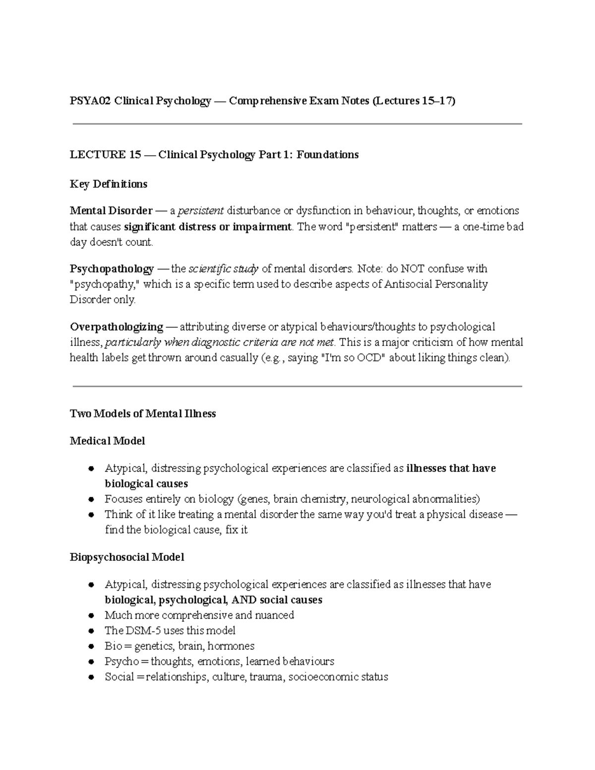 PSYA02 Clinical Psychology Final Exam Notes: Key Concepts & Models ...