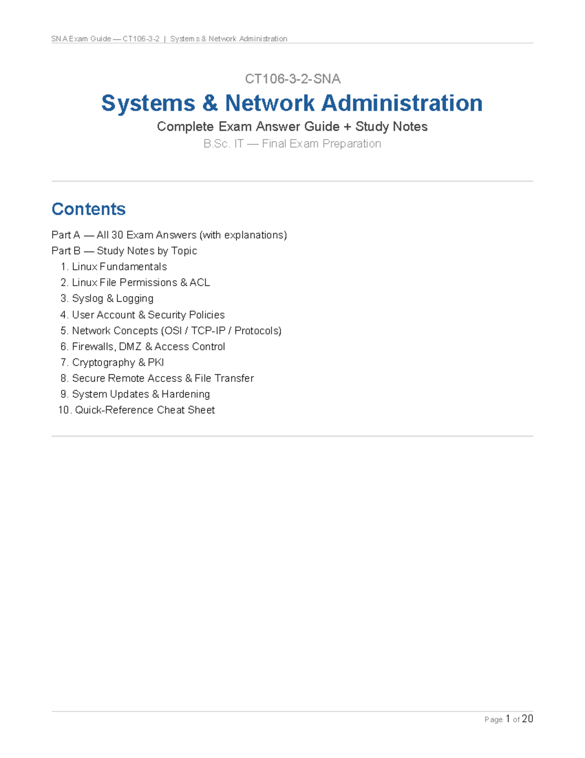 SNA B.Sc. IT Final Exam Study Guide and Answer Key - Studocu
