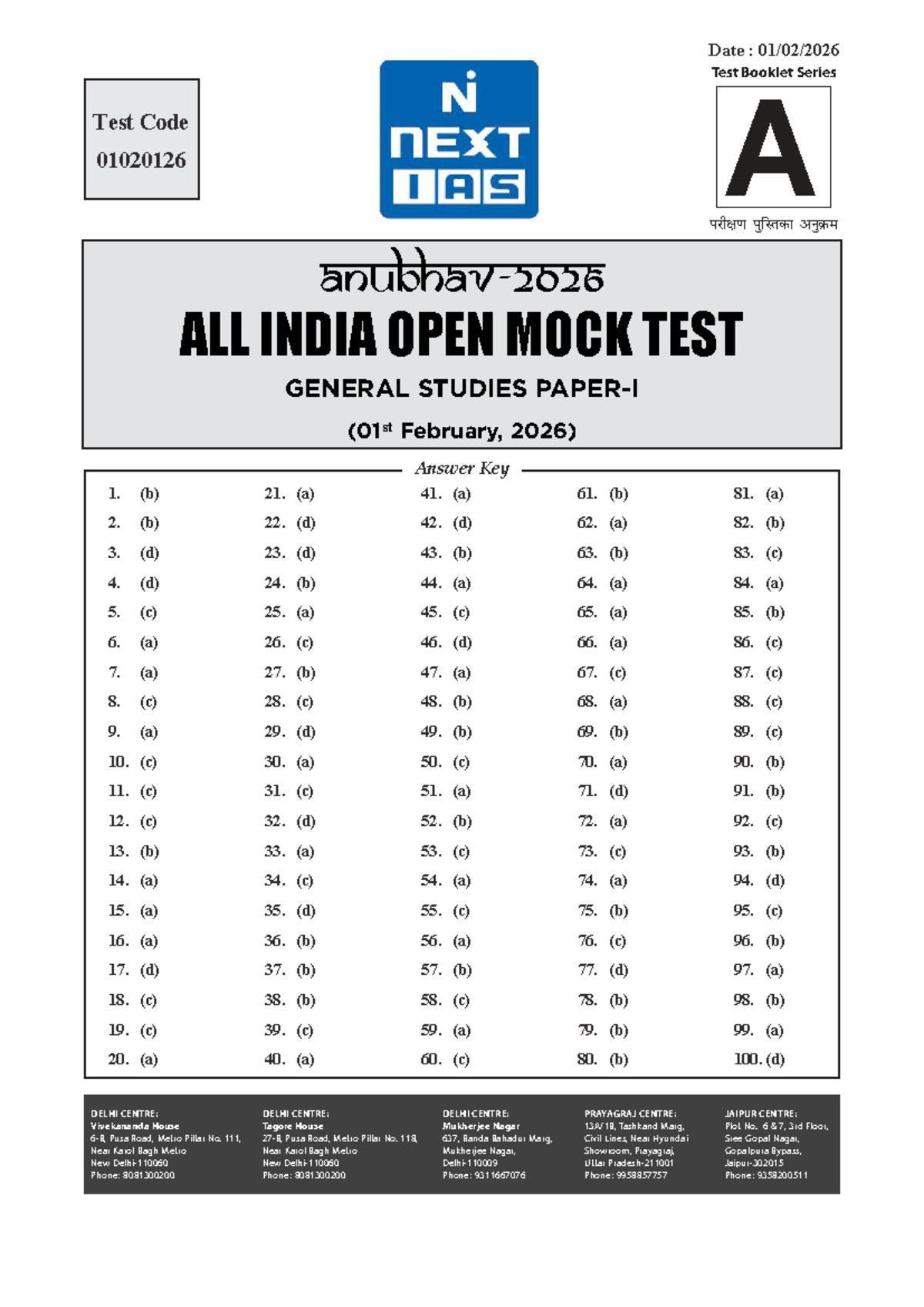 All India Open Mock Test General Studies Answer Key & Explanations (Feb ...