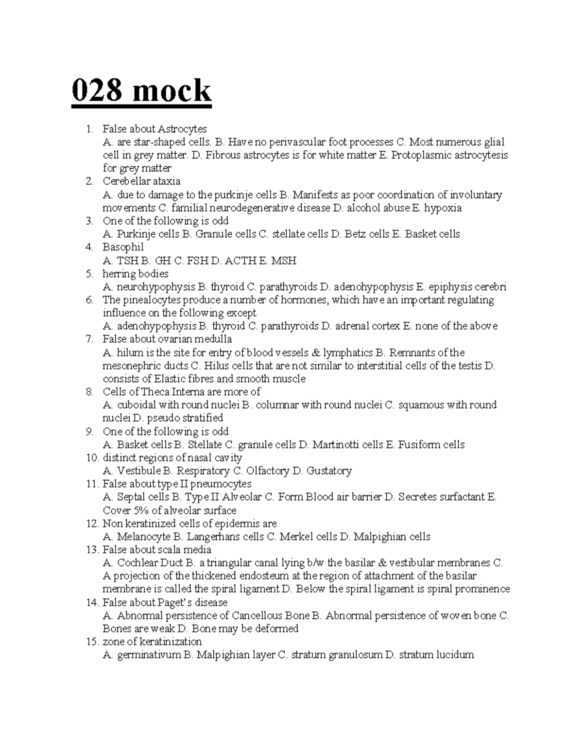 028 Mock Exam: Key Concepts in Neuroanatomy and Physiology - Studocu