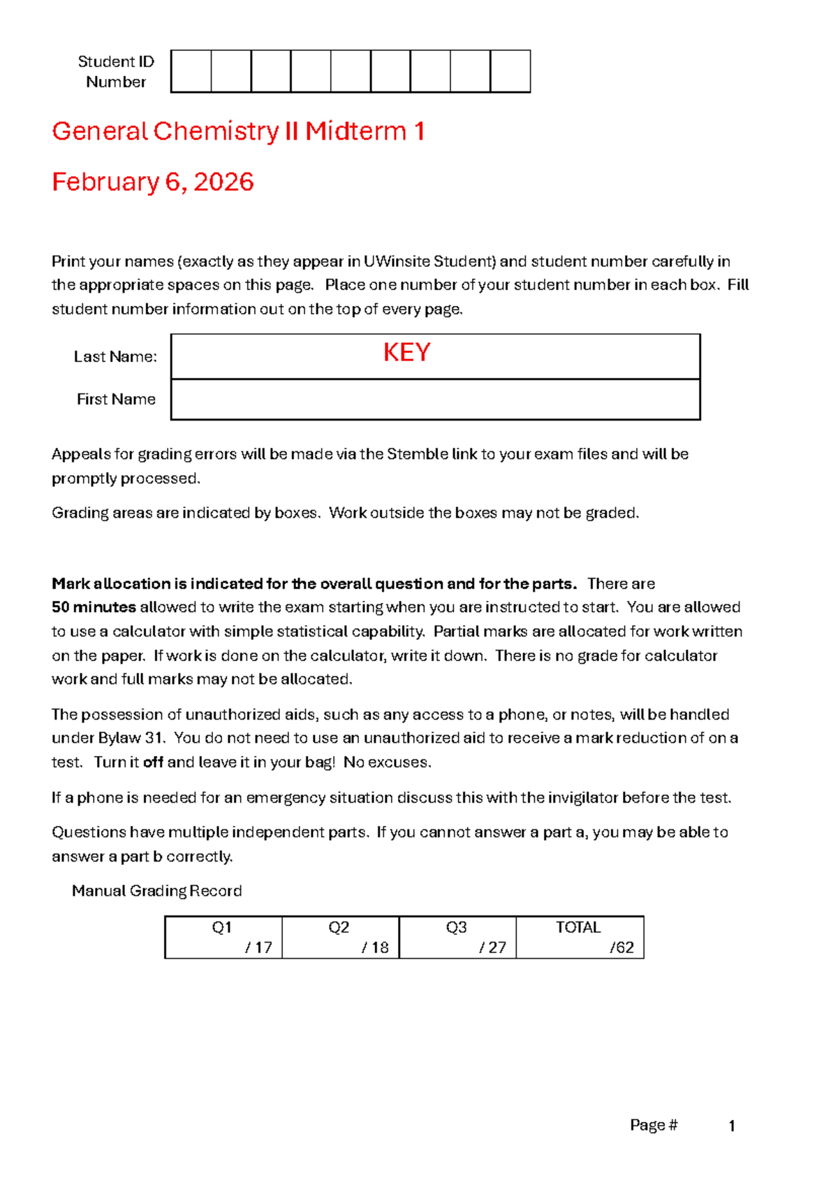 W25 M1A 1110 General Chemistry II Midterm 1 Exam Key - Studocu