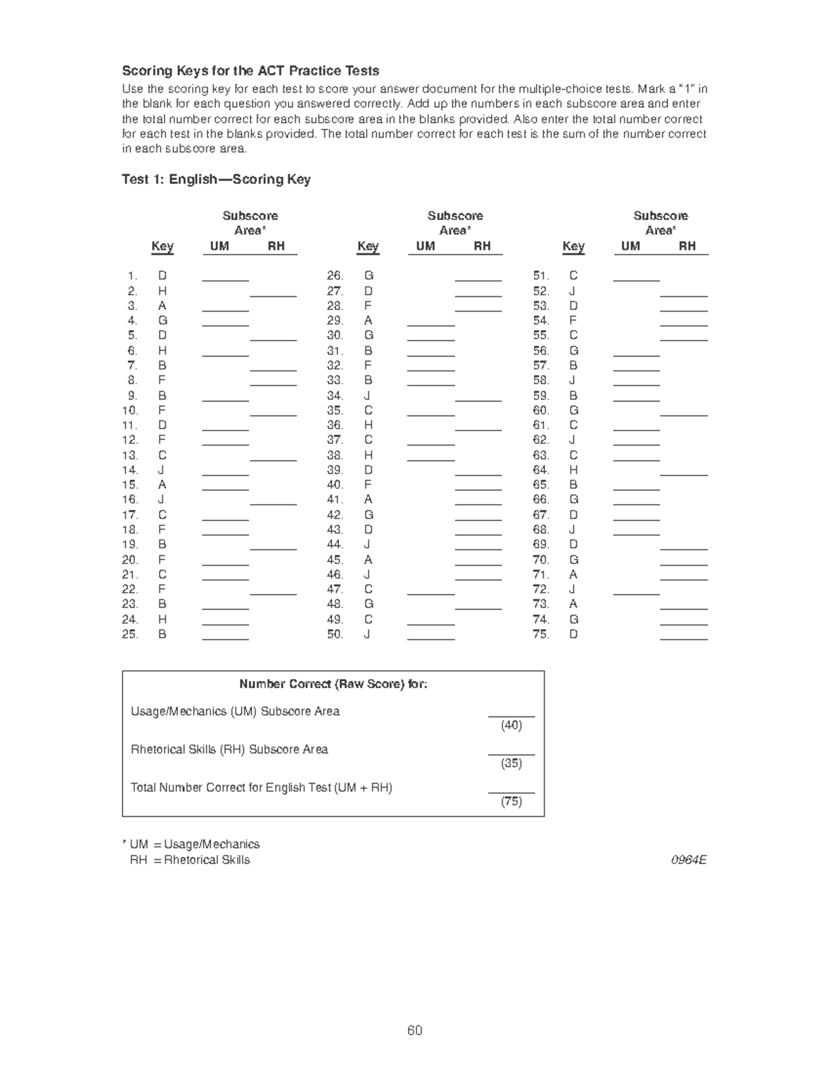 ACT Practice Test 2010-11 Scoring Keys and Answer Guide - Studocu