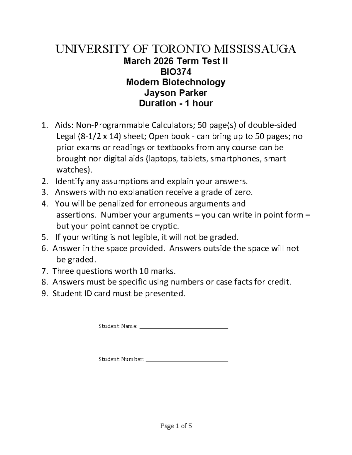 BIO374 Term Test II Answer Key - Modern Biotechnology - Studocu