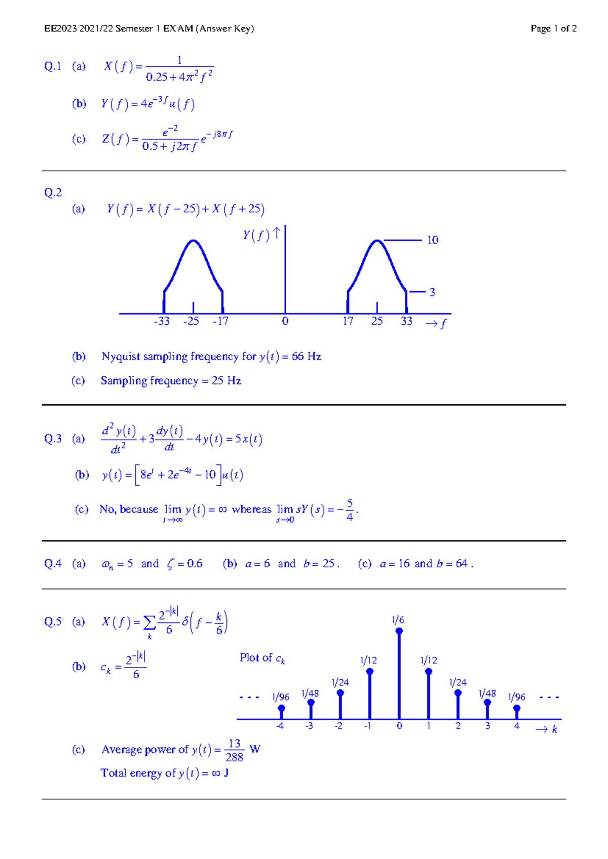 EE2023 Semester 1 Exam Answer Key (2023) - Studocu