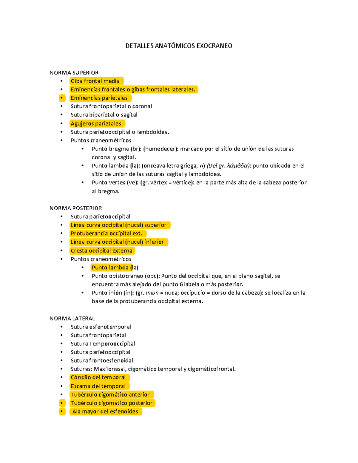 Detalles Anatómicos del Exocráneo: Normas y Puntos Craneométricos - Studocu