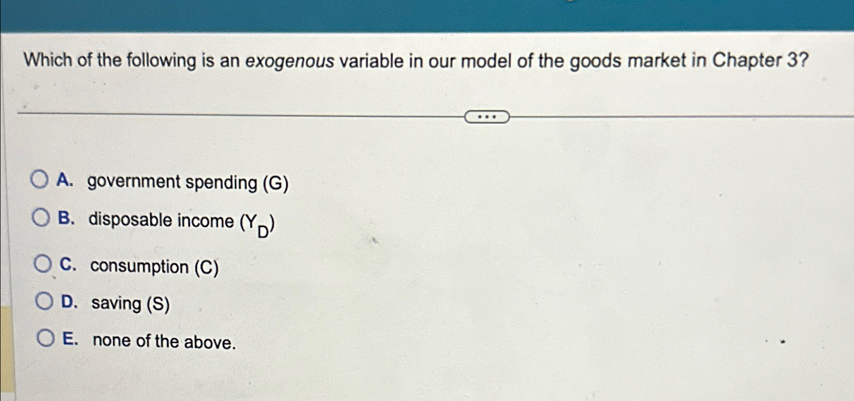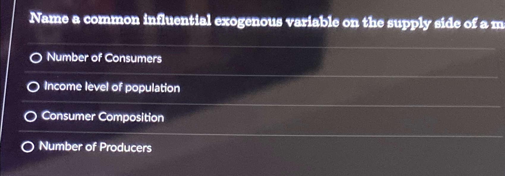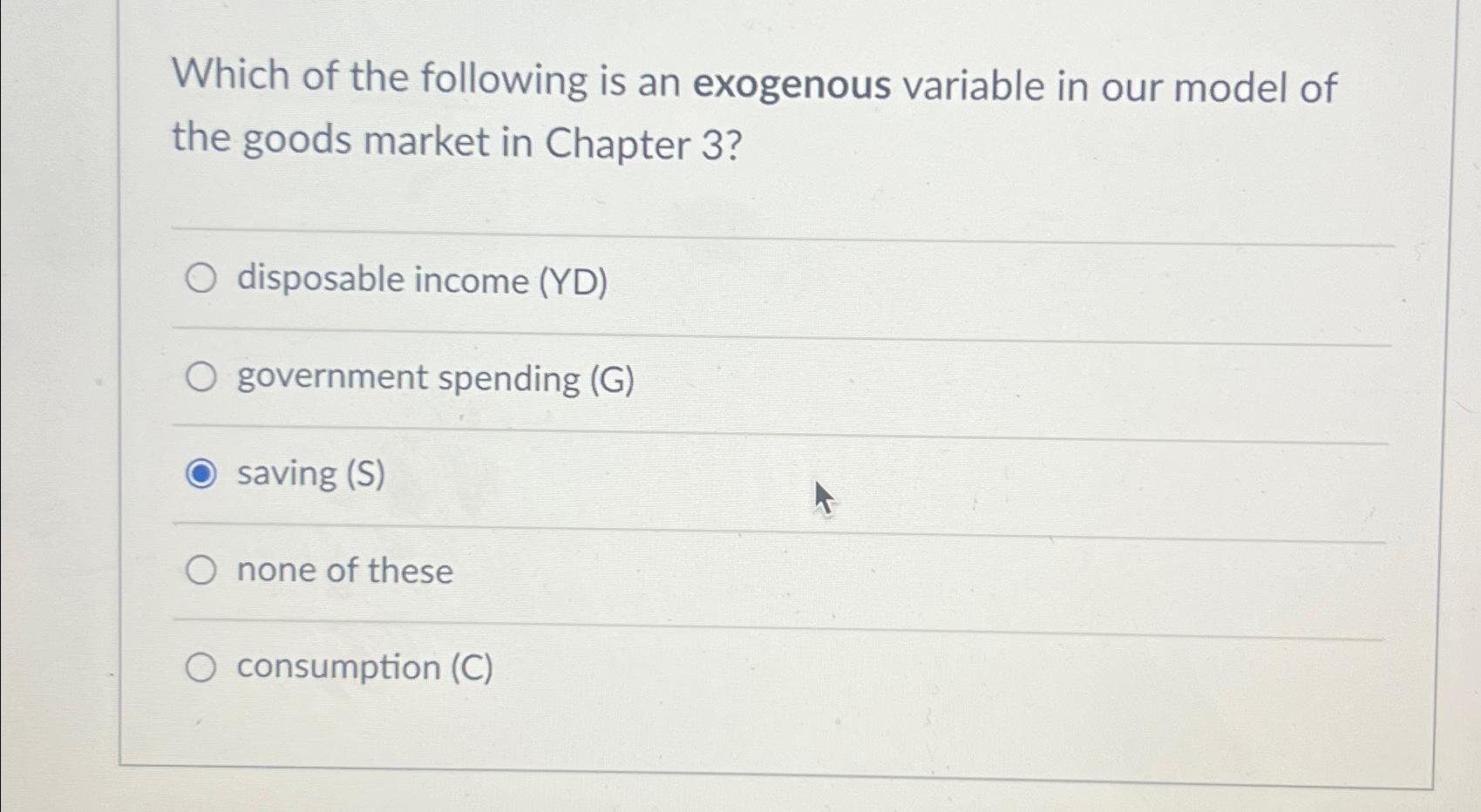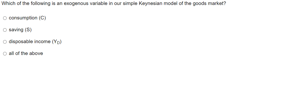 Solved Which of the following is an exogenous variable on | Chegg.com
