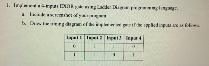 Solved 1. Implement a 4-inputs EXOR gate using Ladder | Chegg.com
