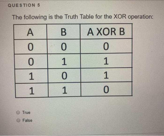Solved 6. (10 points) The truth table for an XOR operation | Chegg.com