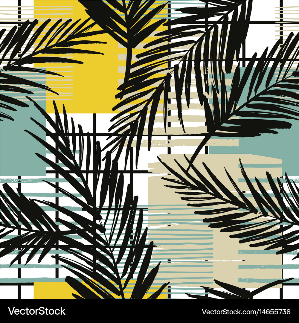 Trendy seamless exotic pattern with palm and geometric elements. 287360 ...