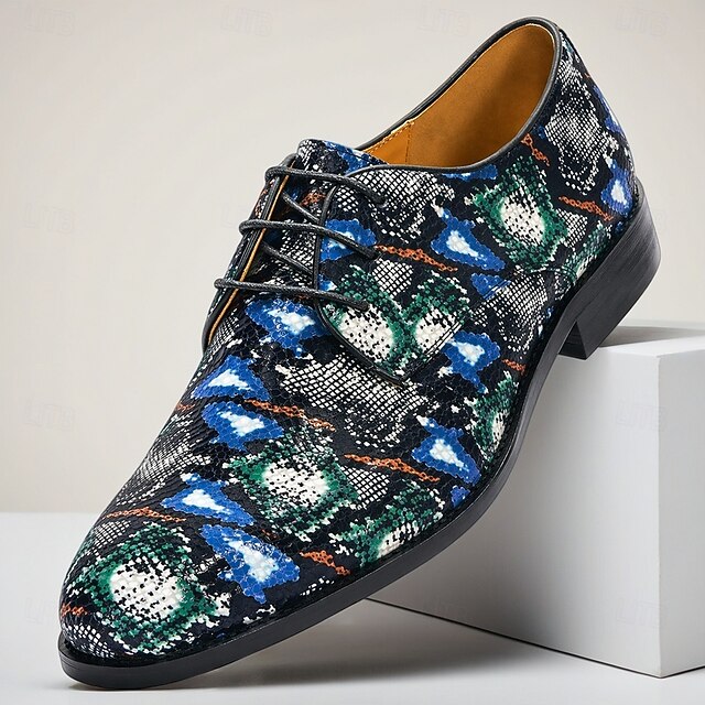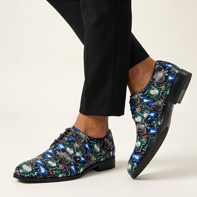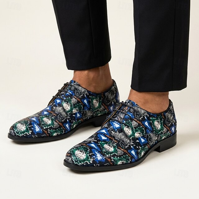 Men's Genuine Leather Blue Snakeskin Pattern Lace-Up Dress Shoes Exotic ...