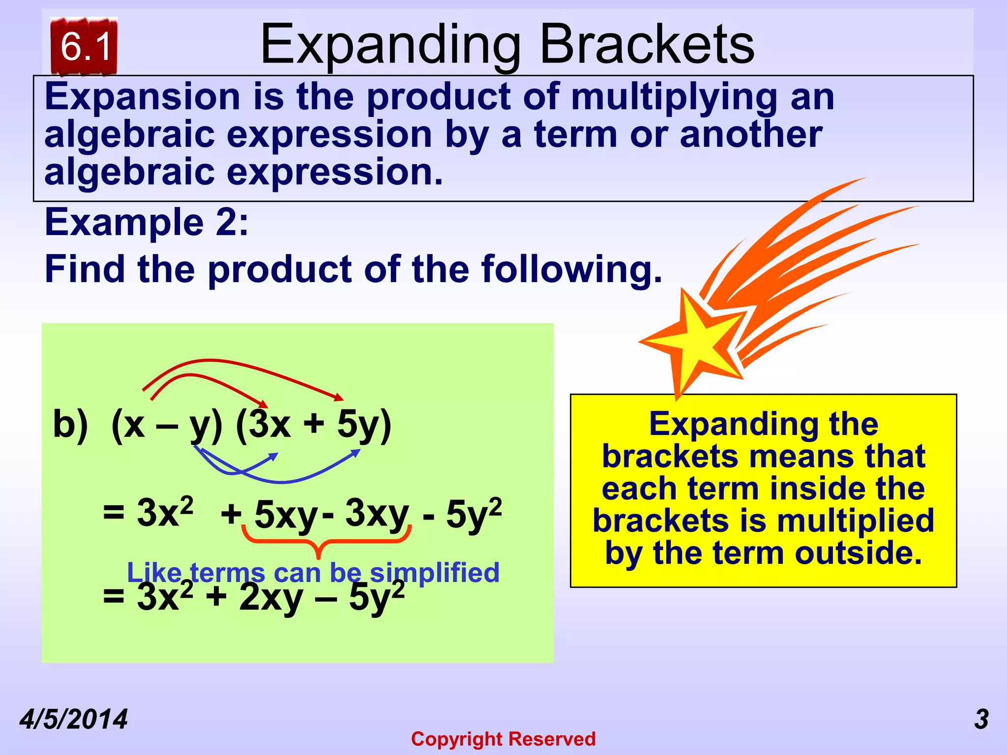 expansion of brackets, algebraic expression | PPT