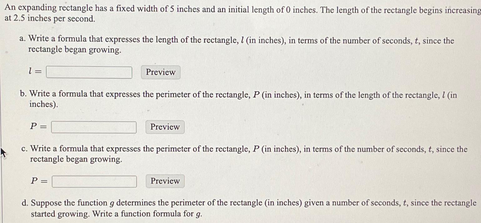 Solved An expanding rectangle has a fixed width of 5 inches | Chegg.com
