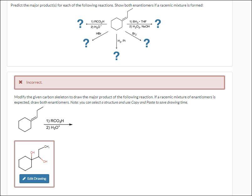 Solved ∗ Incorrect. Modify the given carbon skeleton to draw | Chegg.com