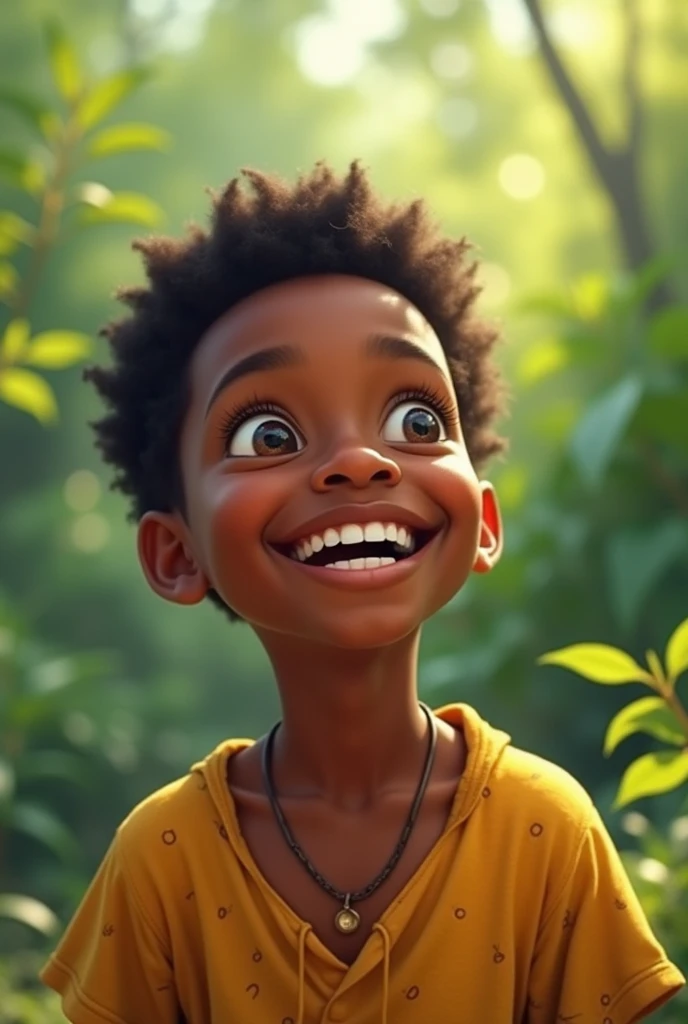 An aftican boy full of joy and smiling face in a cool environment ...