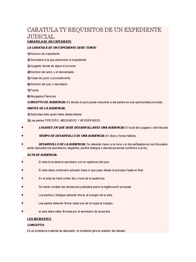 ESTRUCTURA EXPEDIENTE JUDICIAL: CARATULA TY REQUISITOS DE UN EXPEDIENTE ...