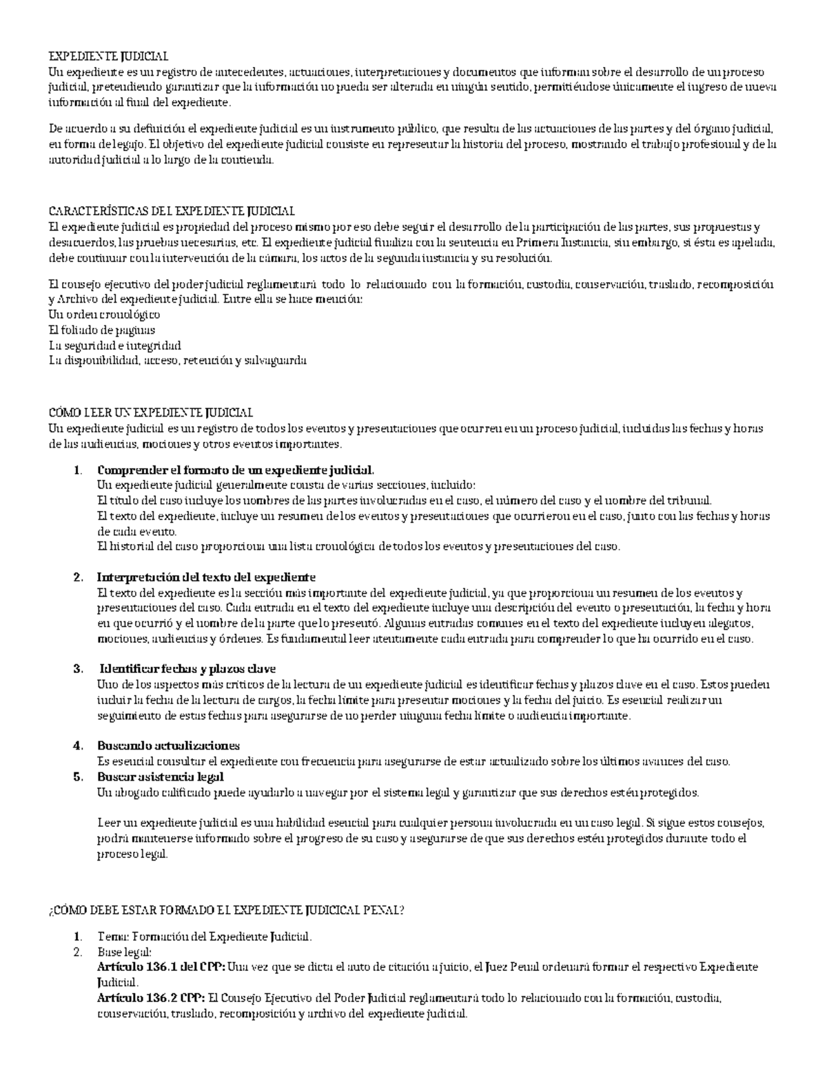 Guía Completa sobre el Expediente Judicial: Estructura y Función - Studocu