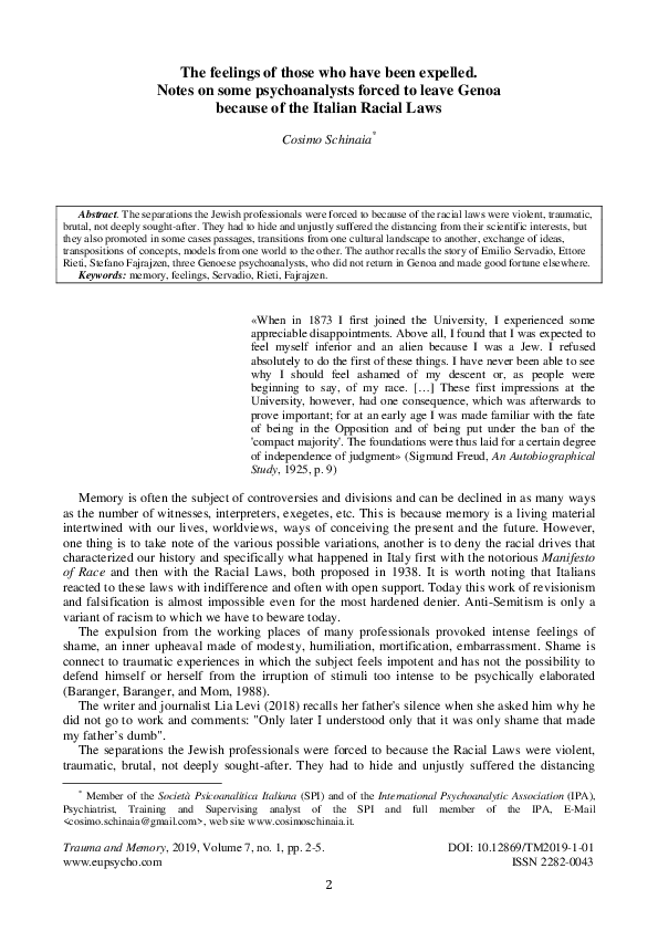 (PDF) The feelings of those who have been expelled. Notes on some ...