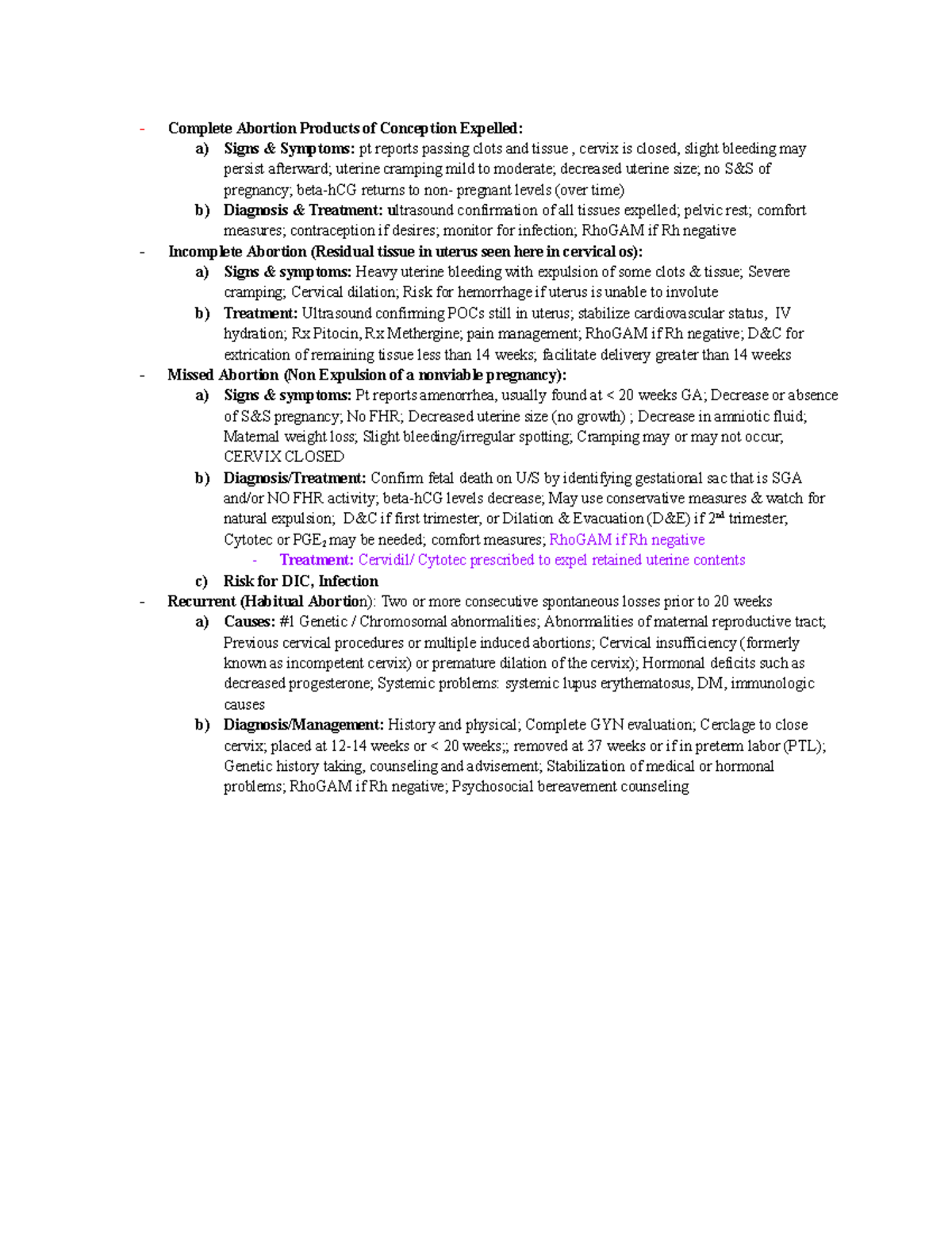 OB Page 6 - Notes - Complete Abortion Products of Conception Expelled ...