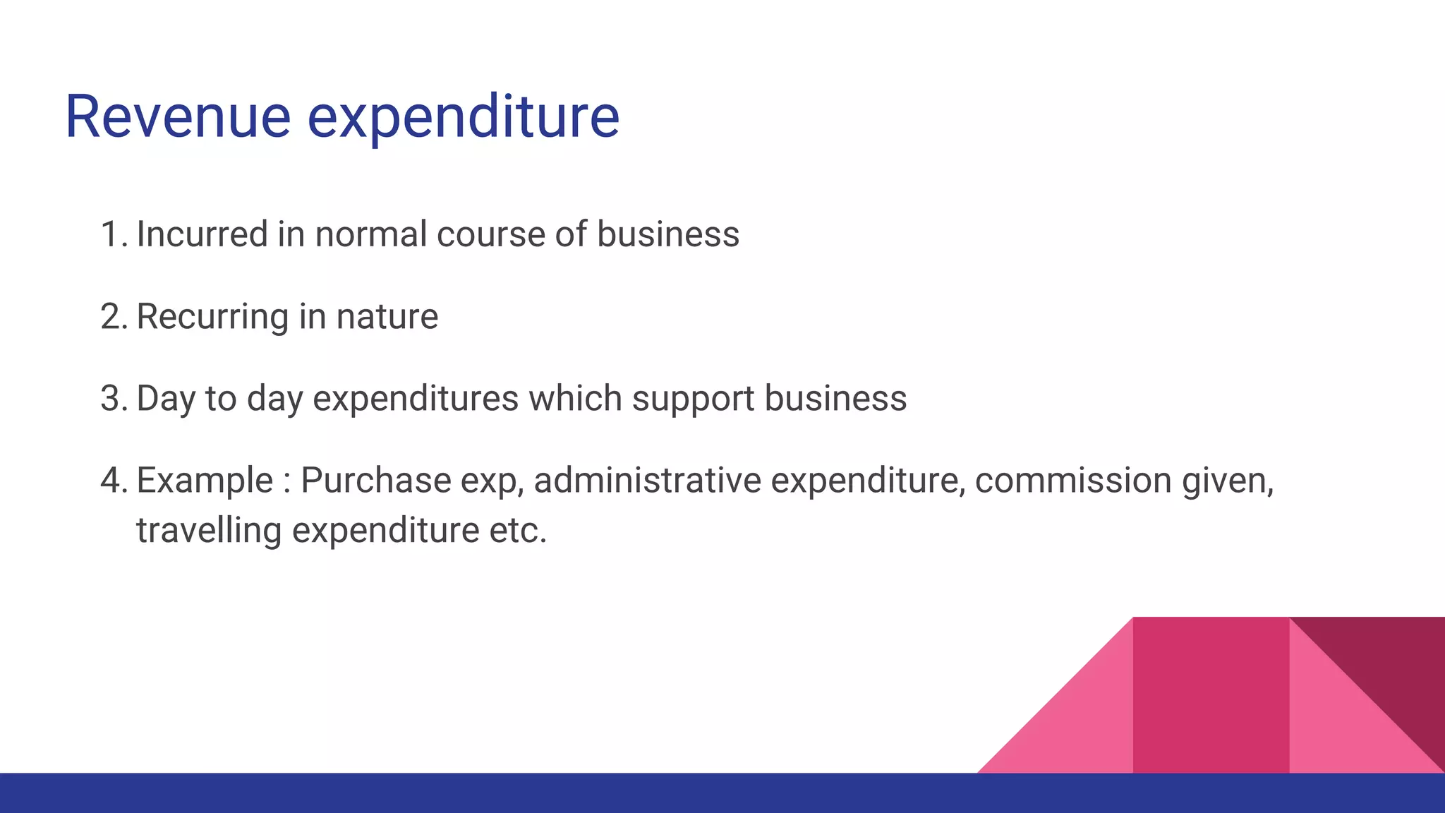 Revenue Expenditure and its explanation - Examples of revenue ...