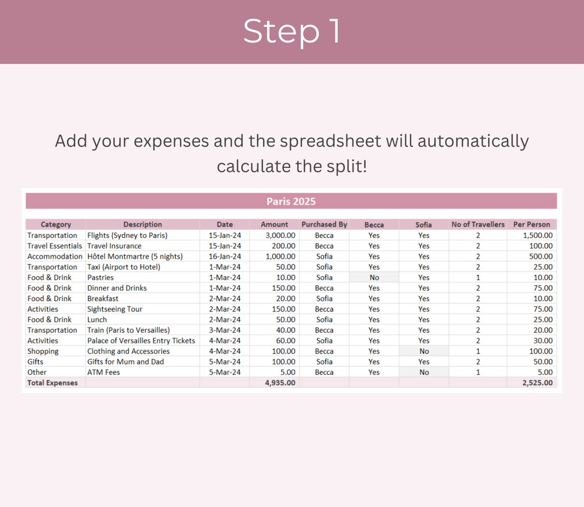 Travel Expense Splitter Spreadsheet Template for Microsoft Excel - Etsy
