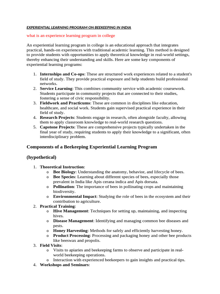 Experiential Learning Program | PDF | Beekeeping | Bees