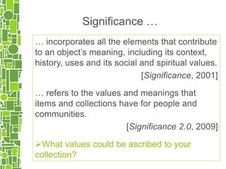 Assessing Significance and Significance 2.0: an introduction - Margaret ...