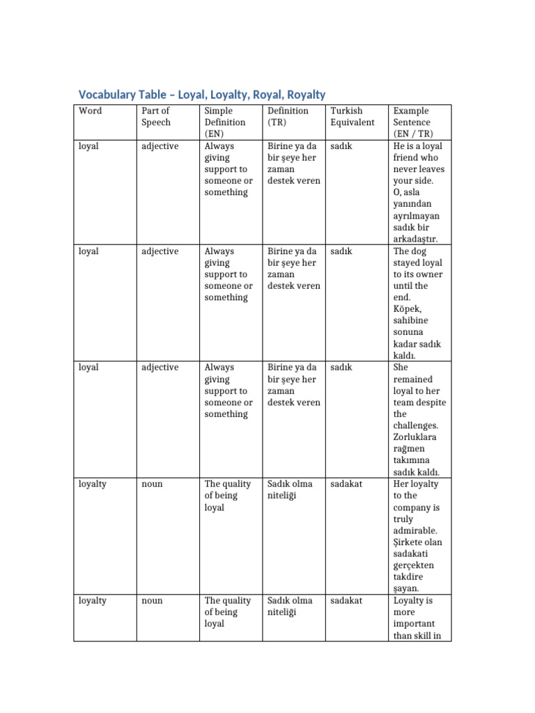 Vocabulary Explanation Table | PDF