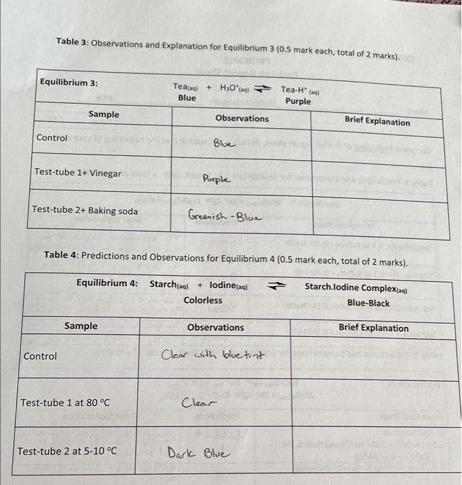 Solved Table 3: Observations and Explanation for Equilibrium | Chegg.com