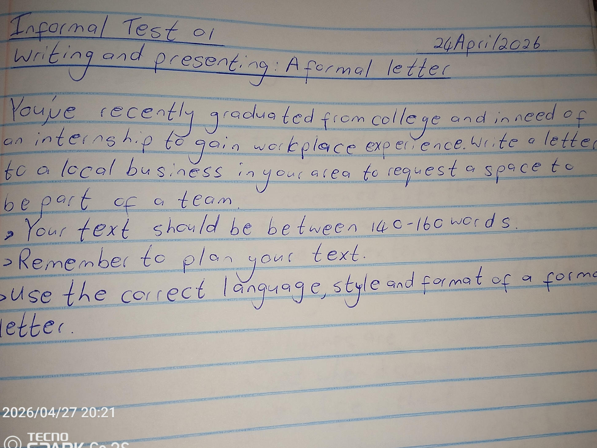 Informal Test ol Writing and presenting: A
