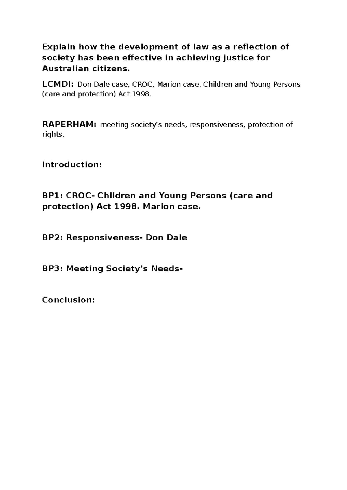 Young People Essay - legal - Explain how the development of law as a ...