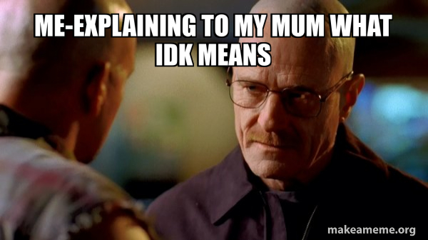 Me-Explaining to my mum what IDK means - Breaking Bad Meme Generator