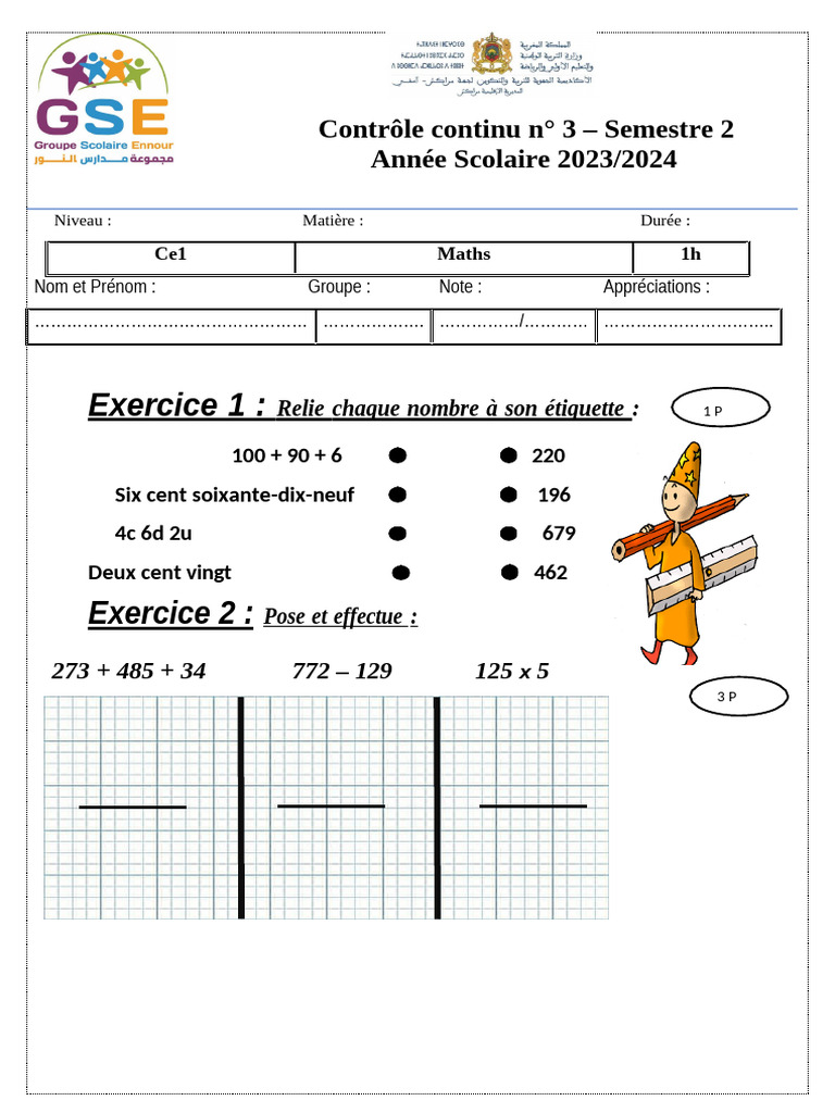 Evaluations de maths CE1 - 3ème trimestre - FichesPédagogiques.com