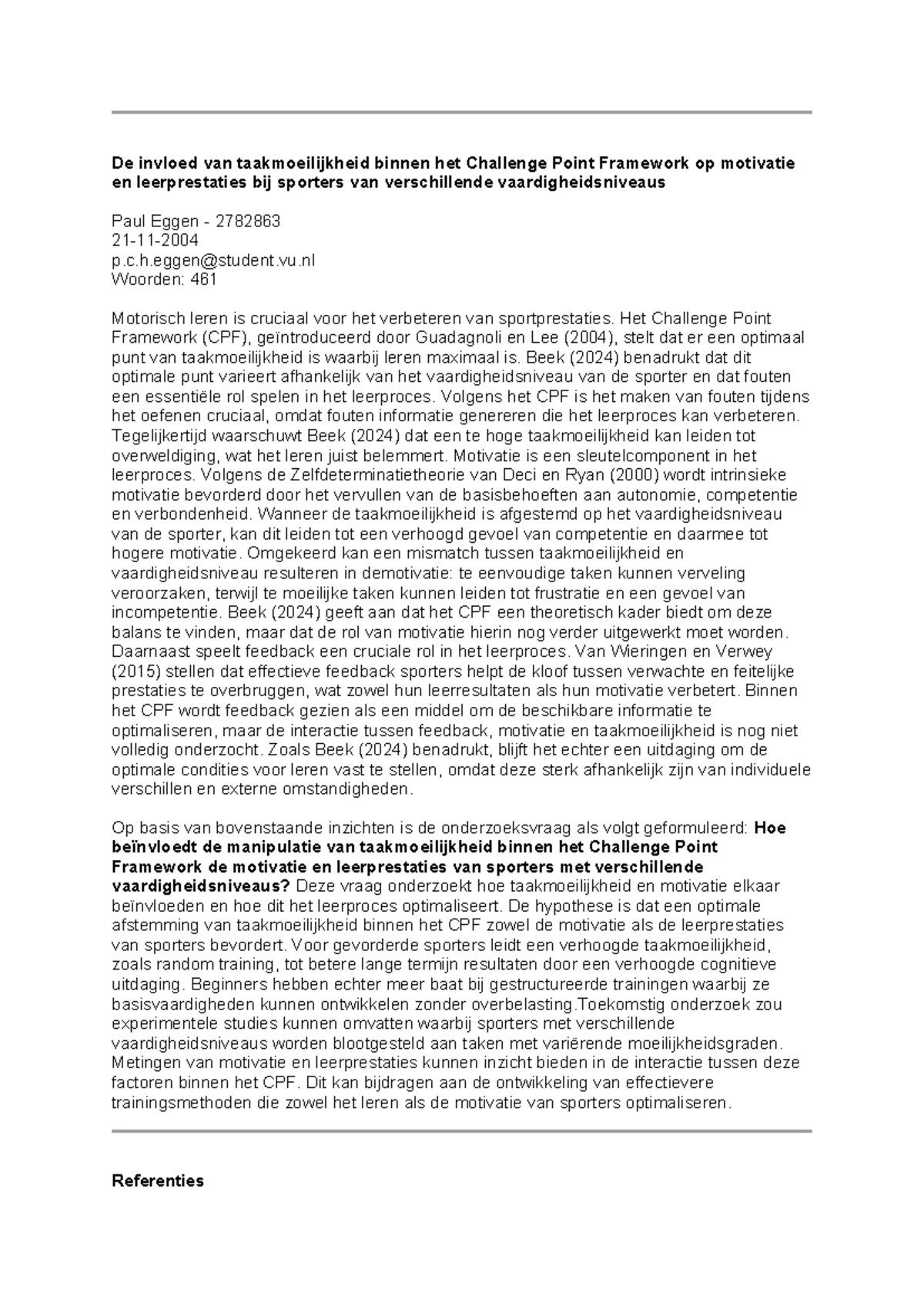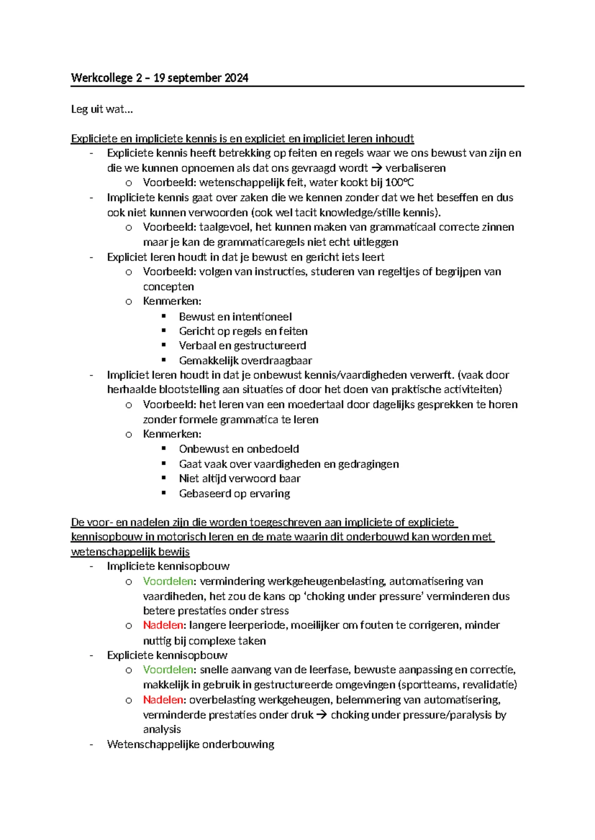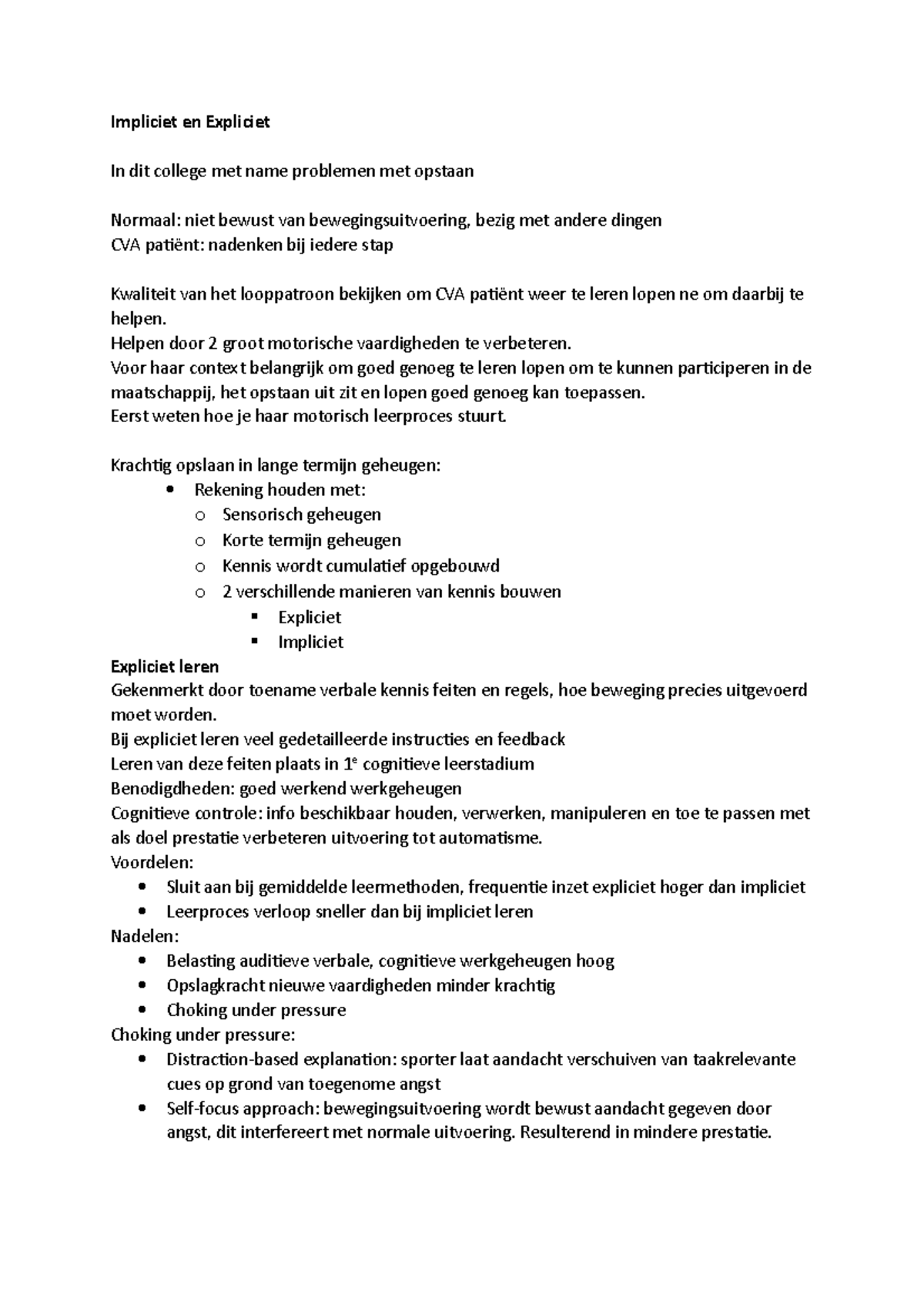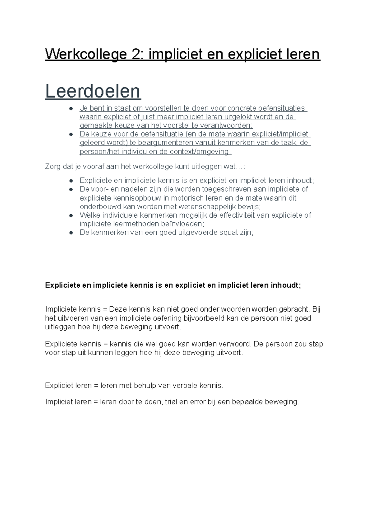 Werkcollege 2: Impliciet vs. Expliciet Leren in Motorisch Leren ...