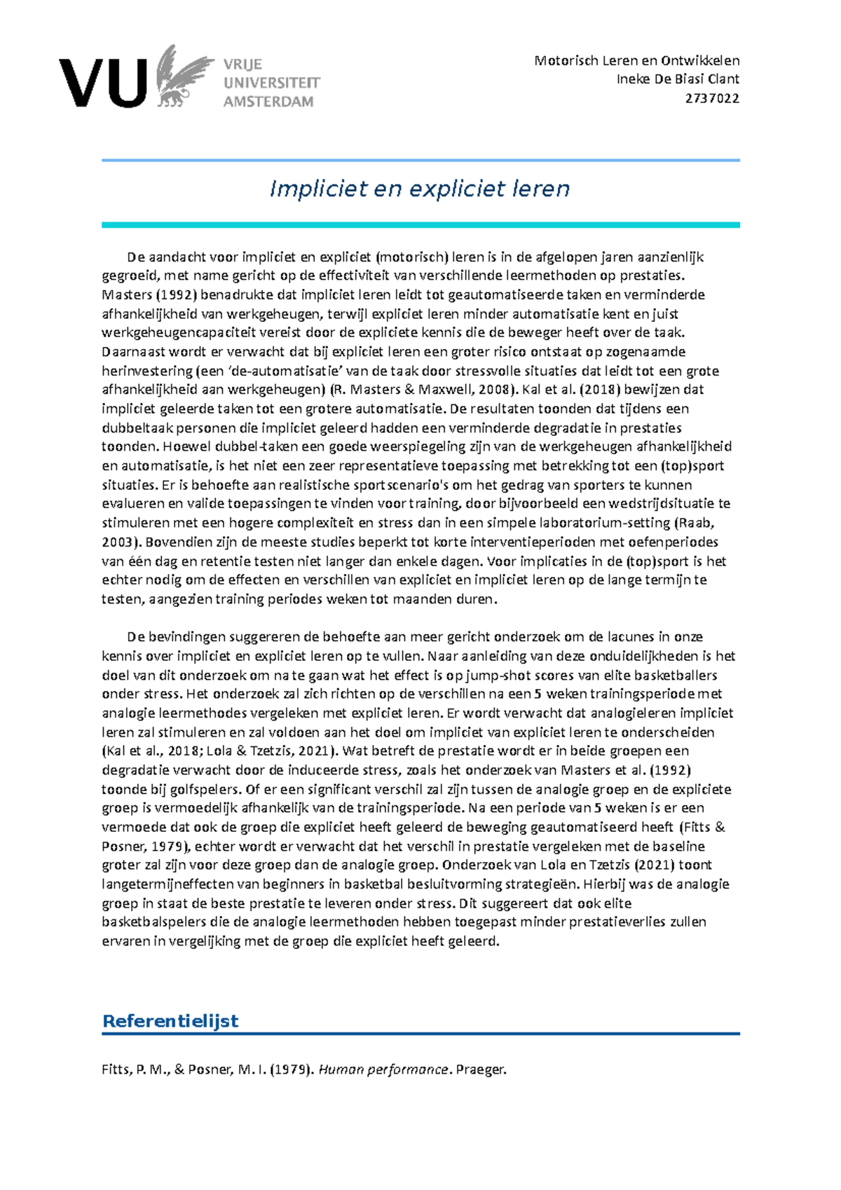 MLO Schrijfopdracht: Impliciet vs. Expliciet Leren bij Basketballers ...