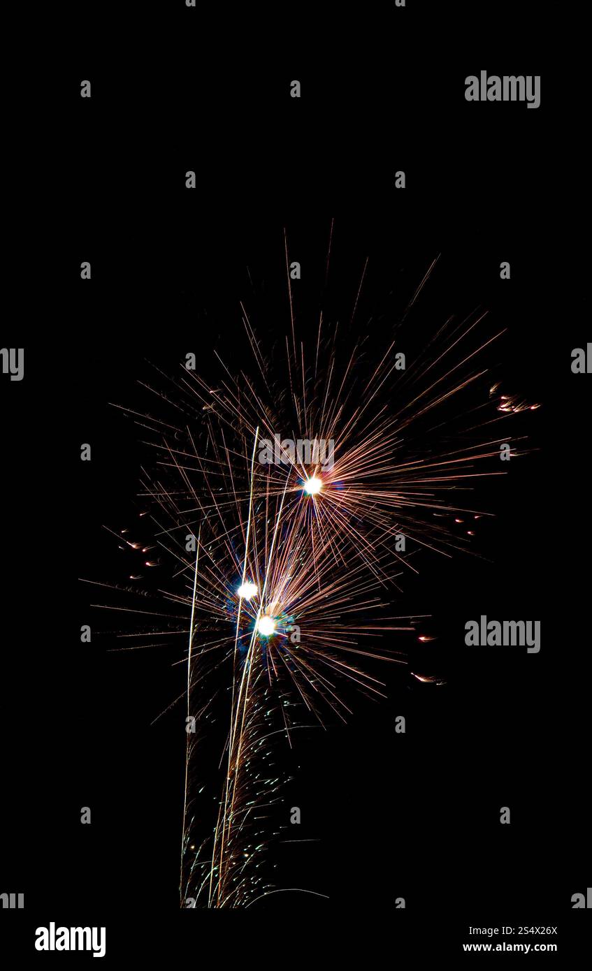 Photograph of fireworks exploding through the night sky Stock Photo - Alamy