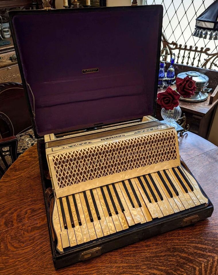 Antique Hohner Carmen Accordion - Mother of Pearl Inlay & Latticework ...