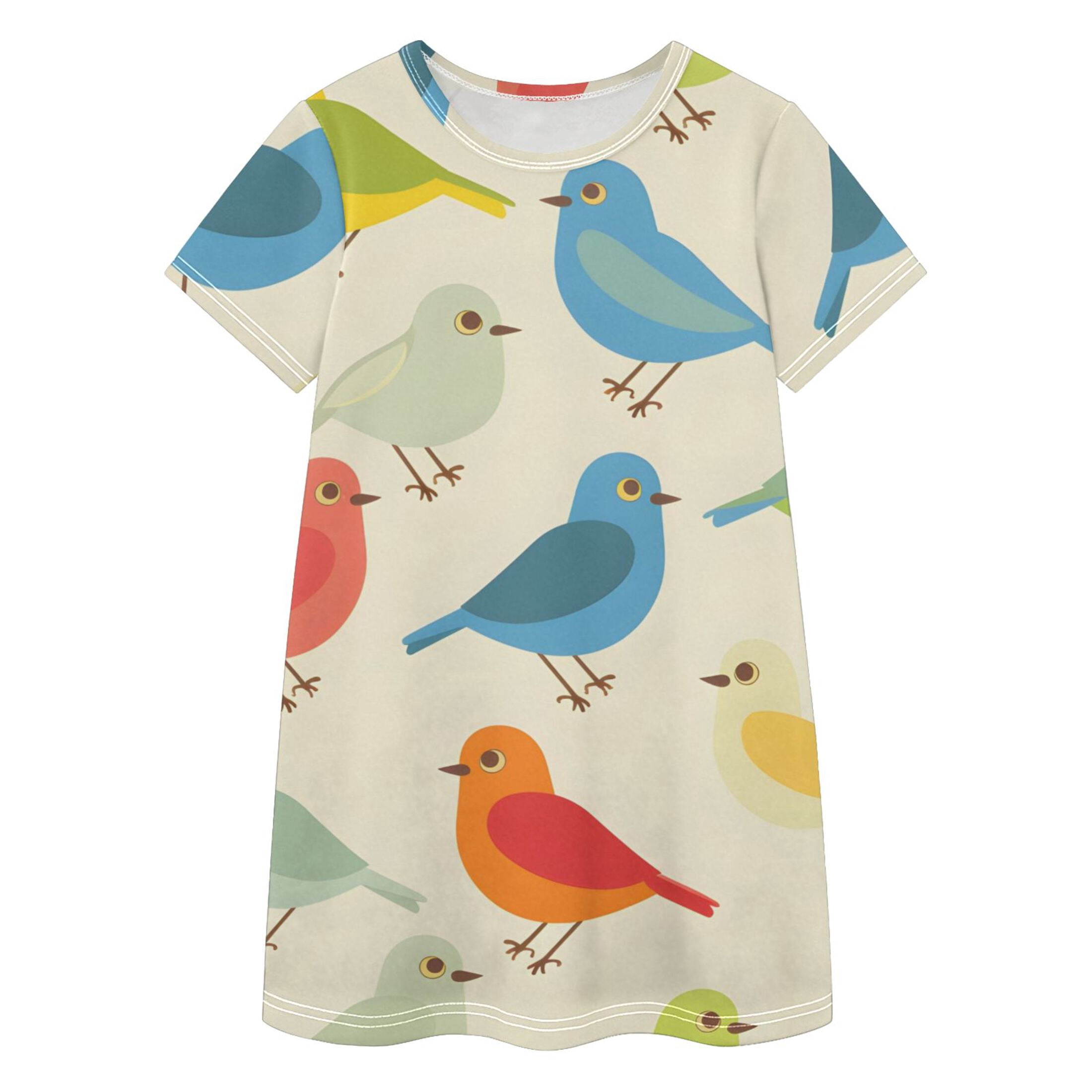 BZSMCE Short Sleeve dress Dress Casual Cotton Dresses-Bird Cartoon Of ...