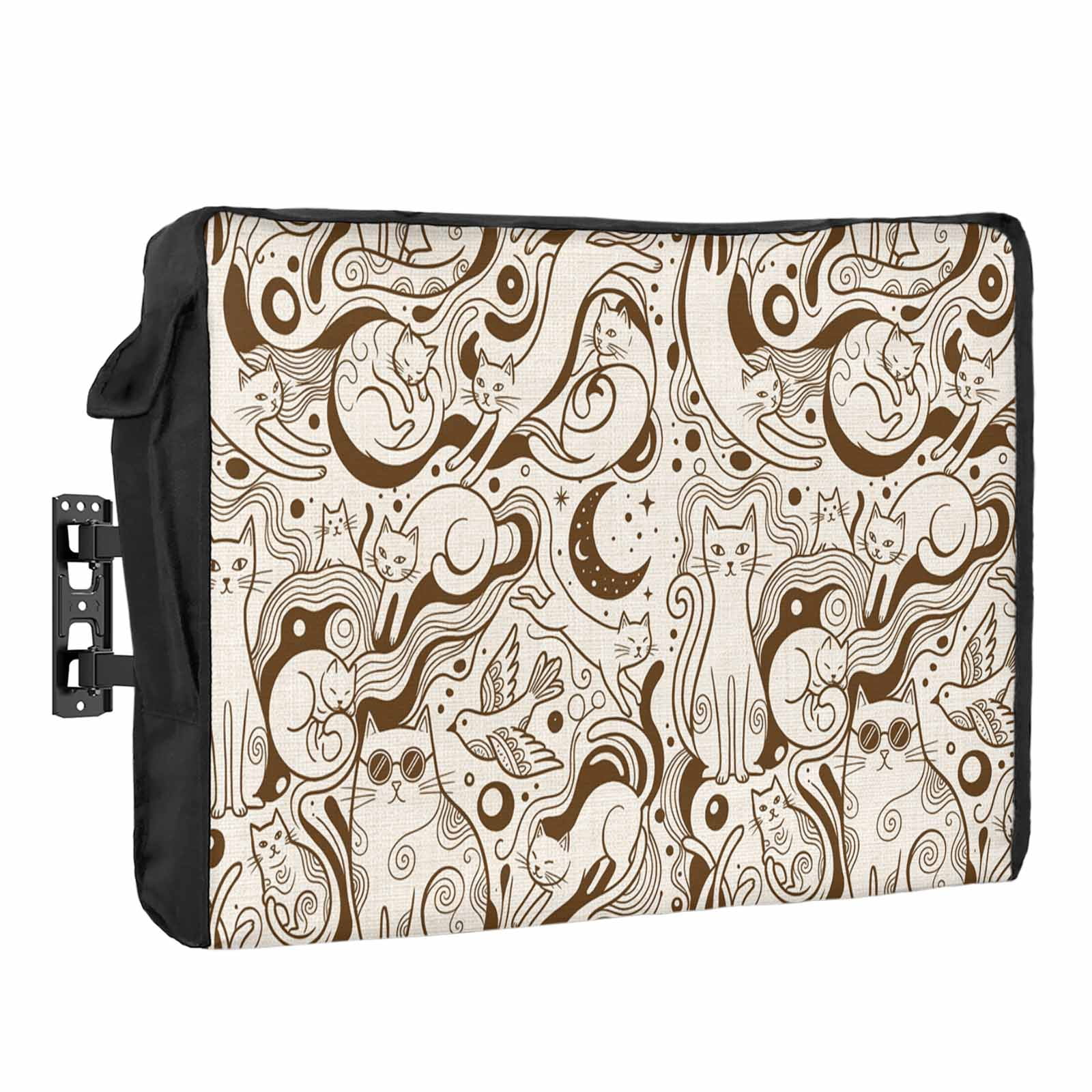 Cat Waterproof Outdoor TV Cover, Cartoon Abstract Moon Cat Bird Brown ...