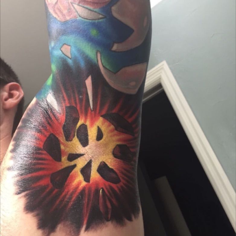 Crazy 80's explosion tattoo (John Clark @ Depiction Tattoos. Arlington ...