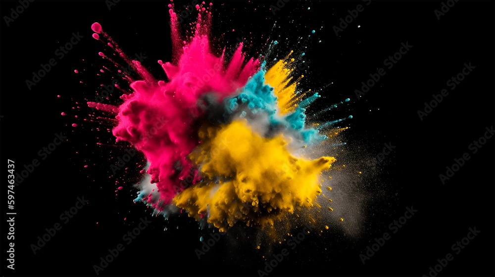 Premium AI Image | Colorful CMYK powder explosion isolated on dark ...