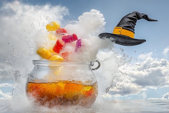 Halloween Cauldron with exploding bubbles and candy | Premium AI ...
