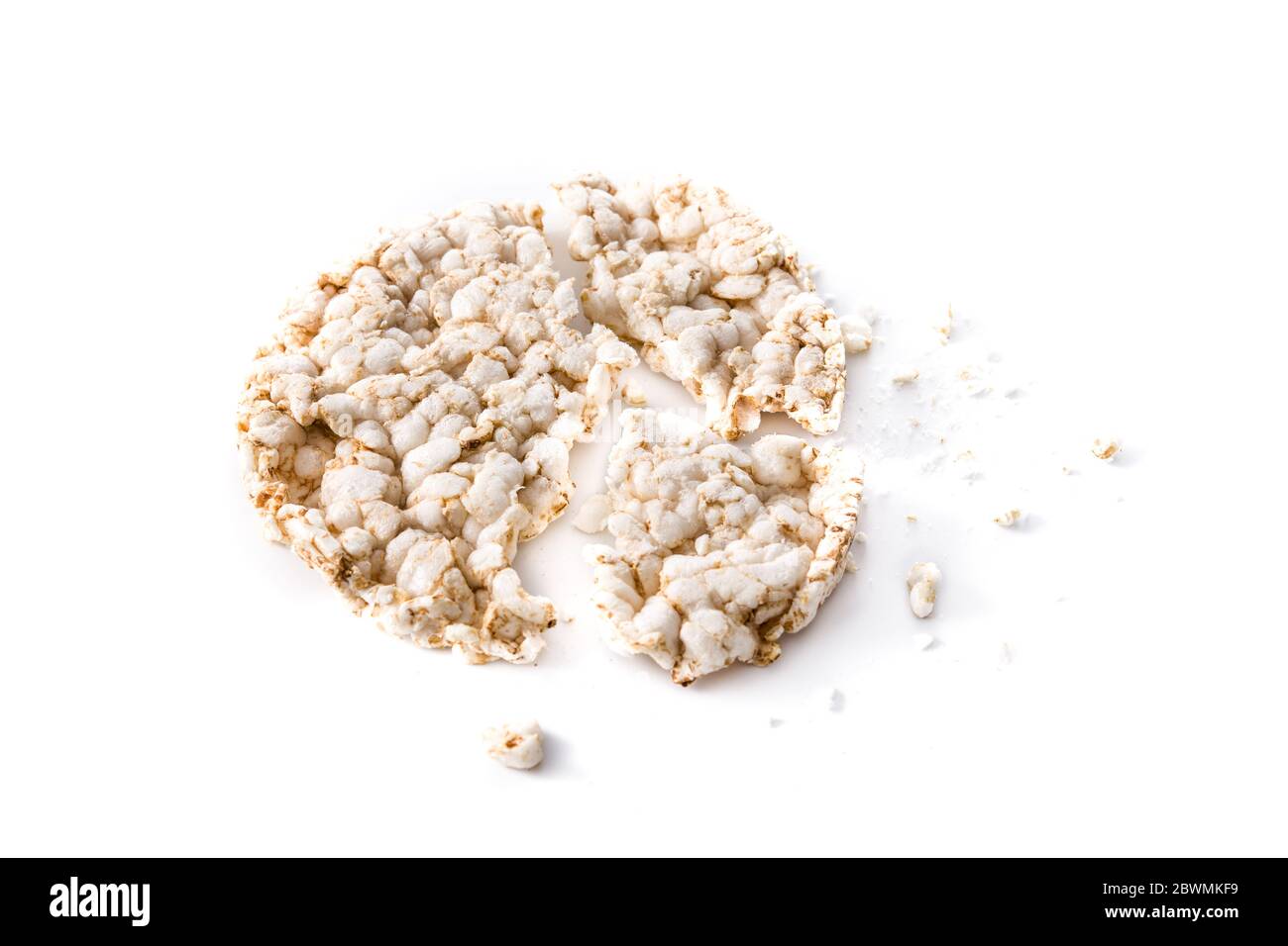 Broken puffed rice cake isolated on white background Stock Photo - Alamy