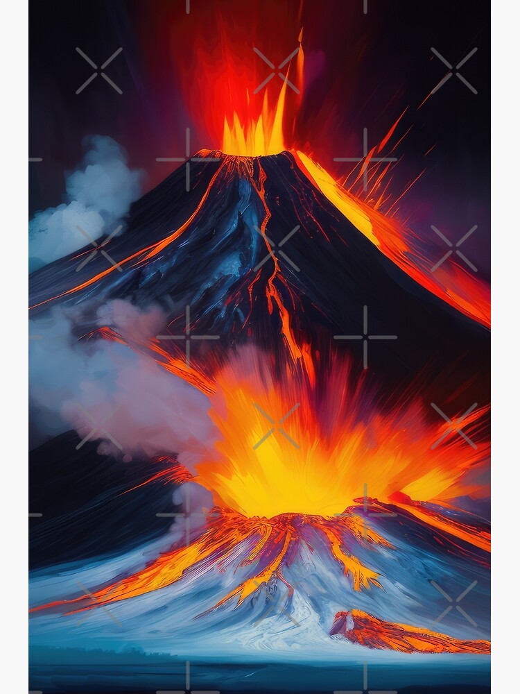 "Erupting Volcano Art Painting - Fiery Eruption Volcanic Landscape ...