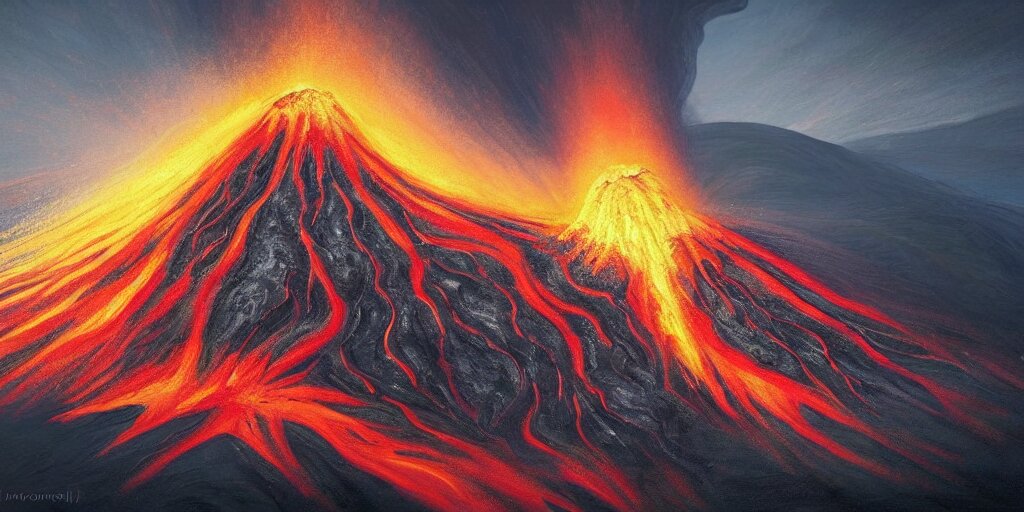 Lexica - A beautiful painting of a volcano erupting, lava sliding down ...