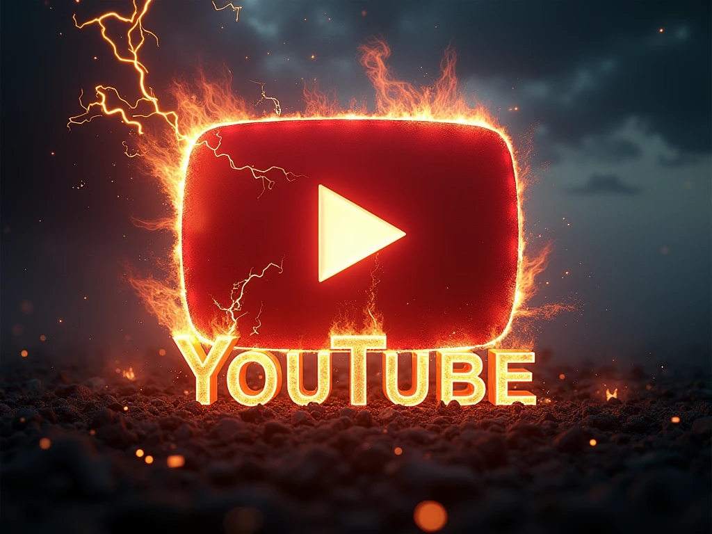 Generate an image of a glowing YouTube logo engulfed in vibrant flames ...