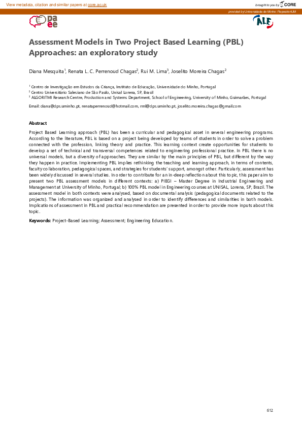 (PDF) Assessment models in two project based learning (PBL) approaches ...