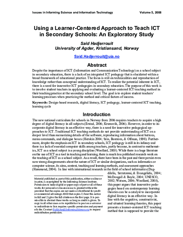 (PDF) Using a Learner-Centered Approach to Teach ICT in Secondary ...