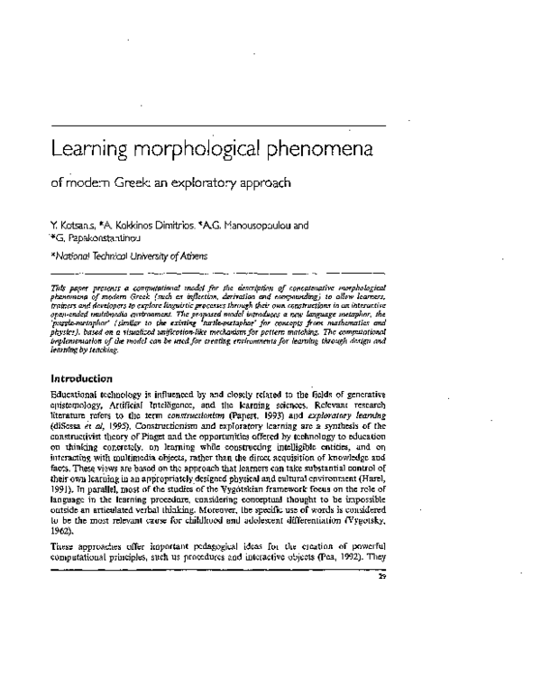 (PDF) Learning morphological phenomena of Modern Greek an exploratory ...