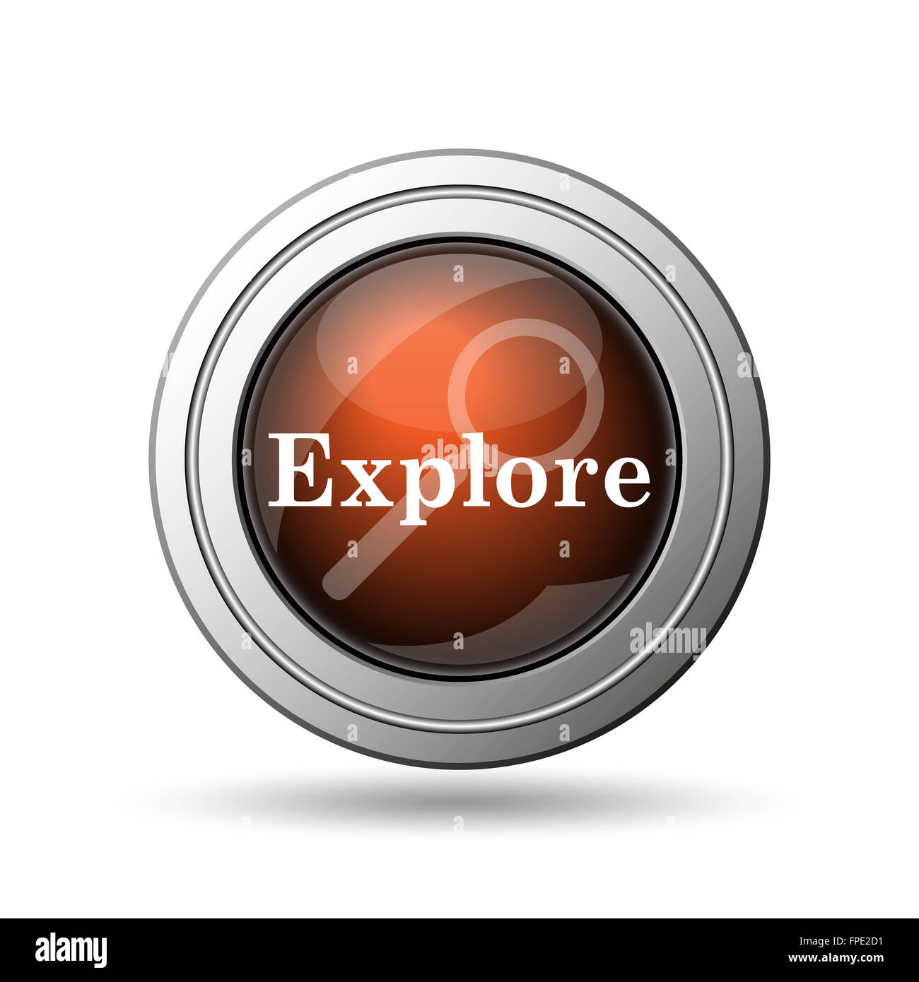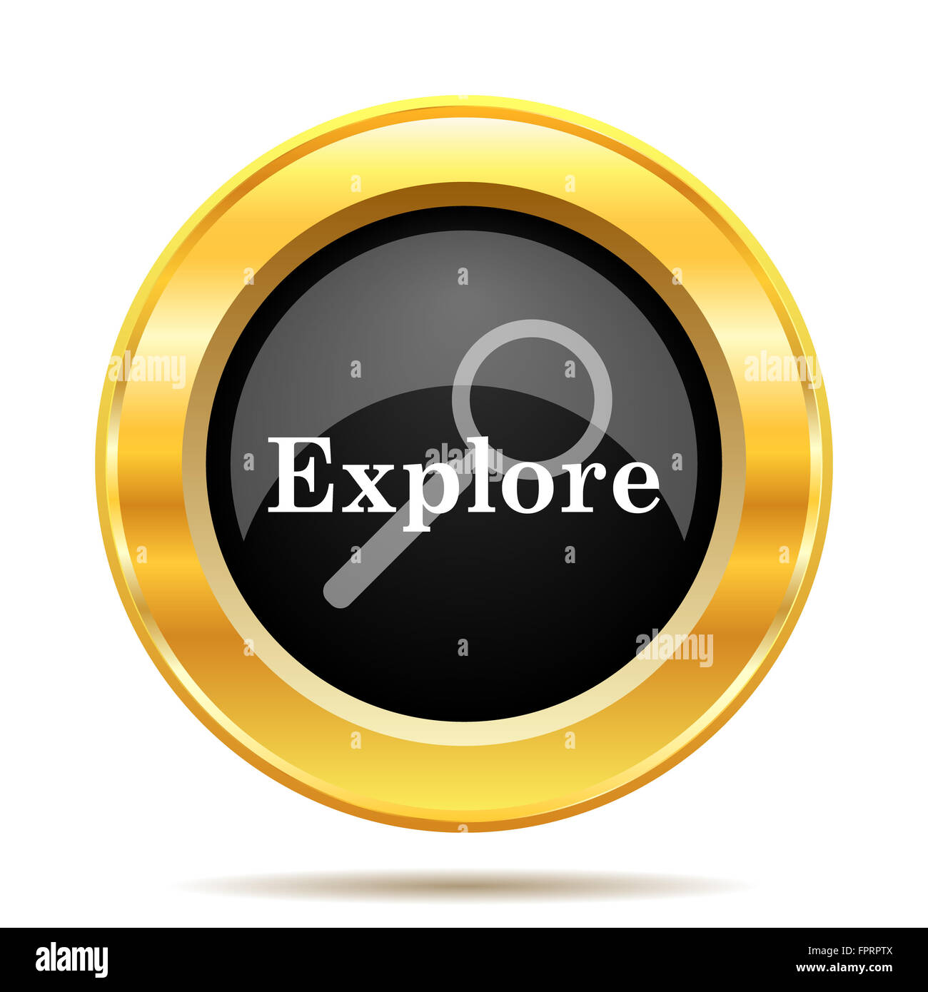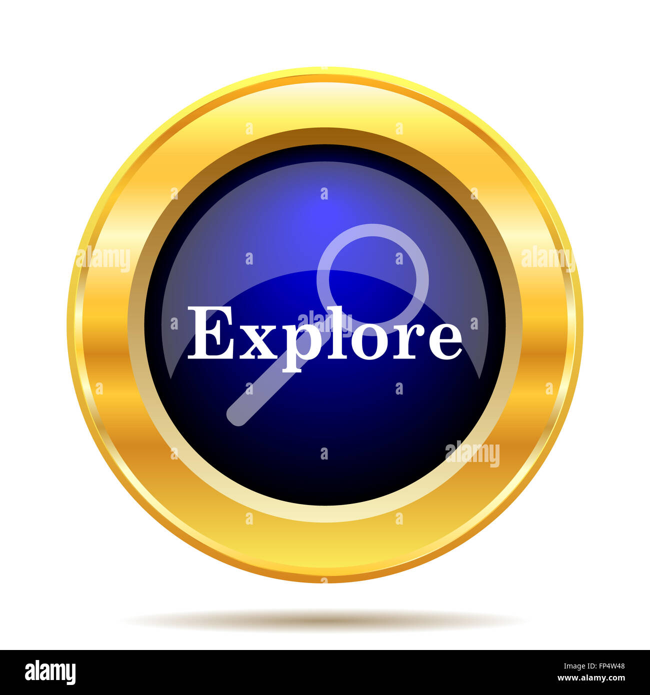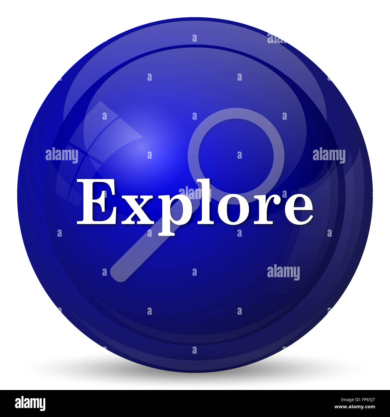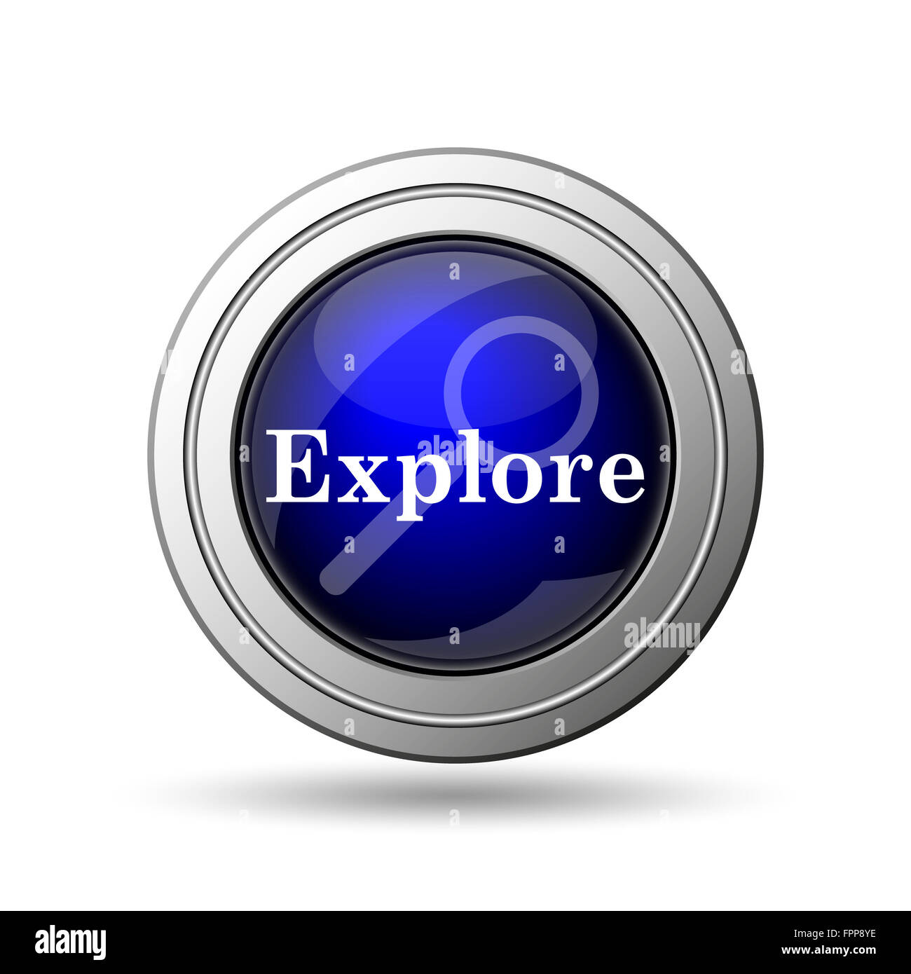 Explore icon. Shiny glossy internet button on white background Stock ...