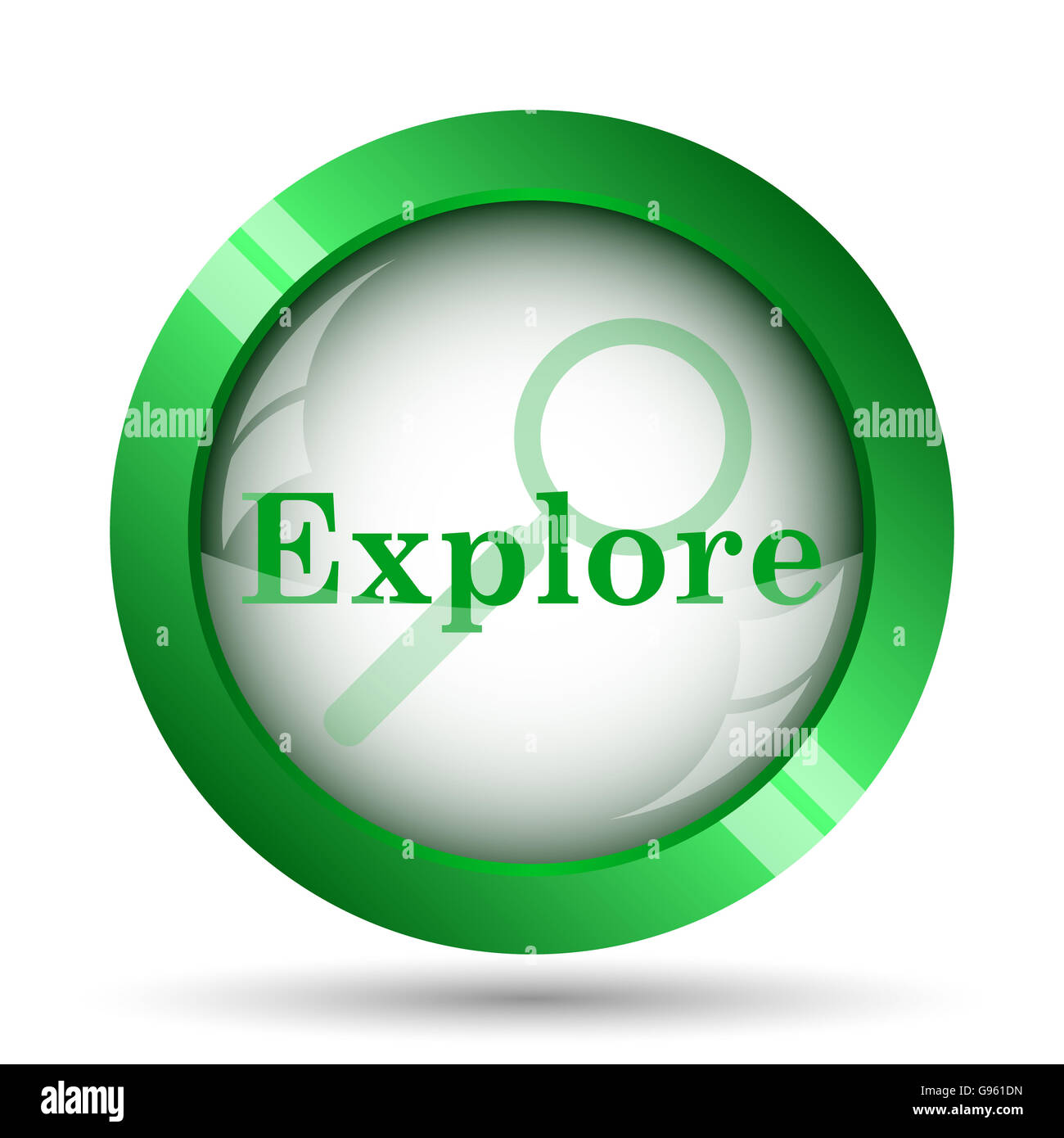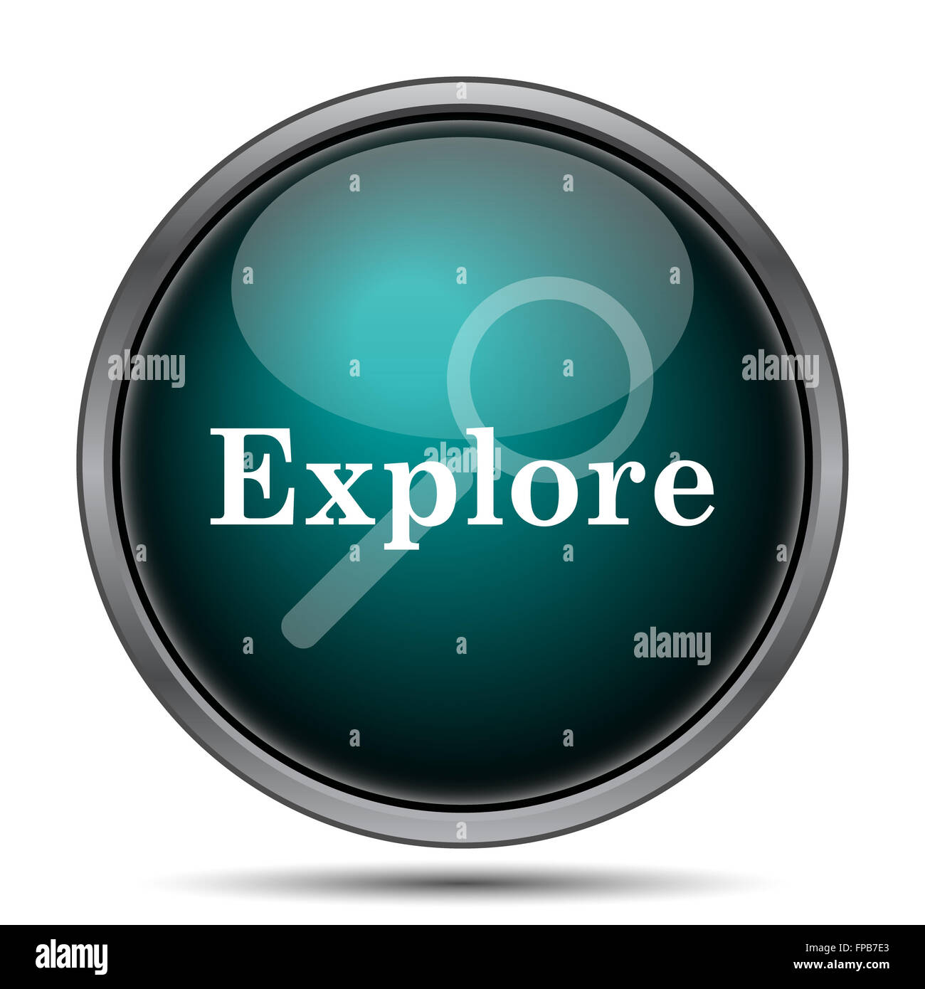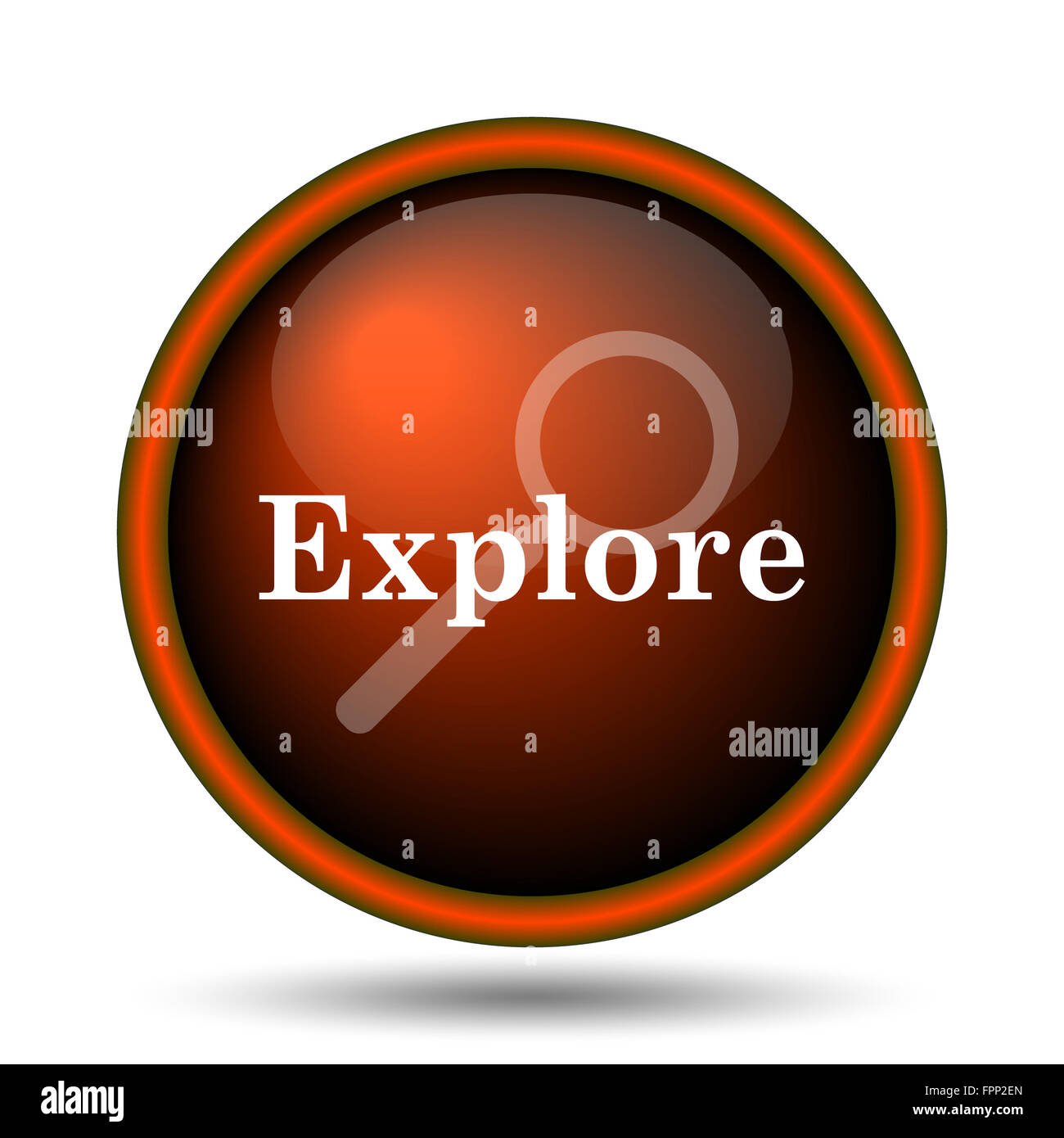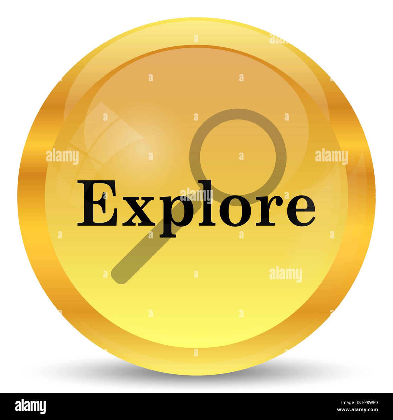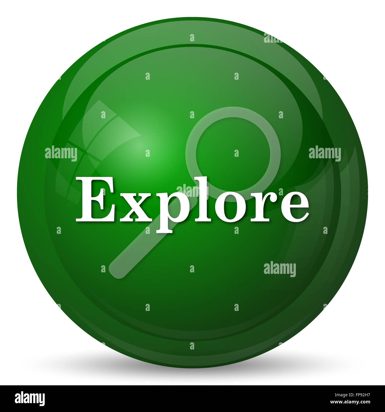 Explore icon. Shiny glossy internet button on white background Stock ...